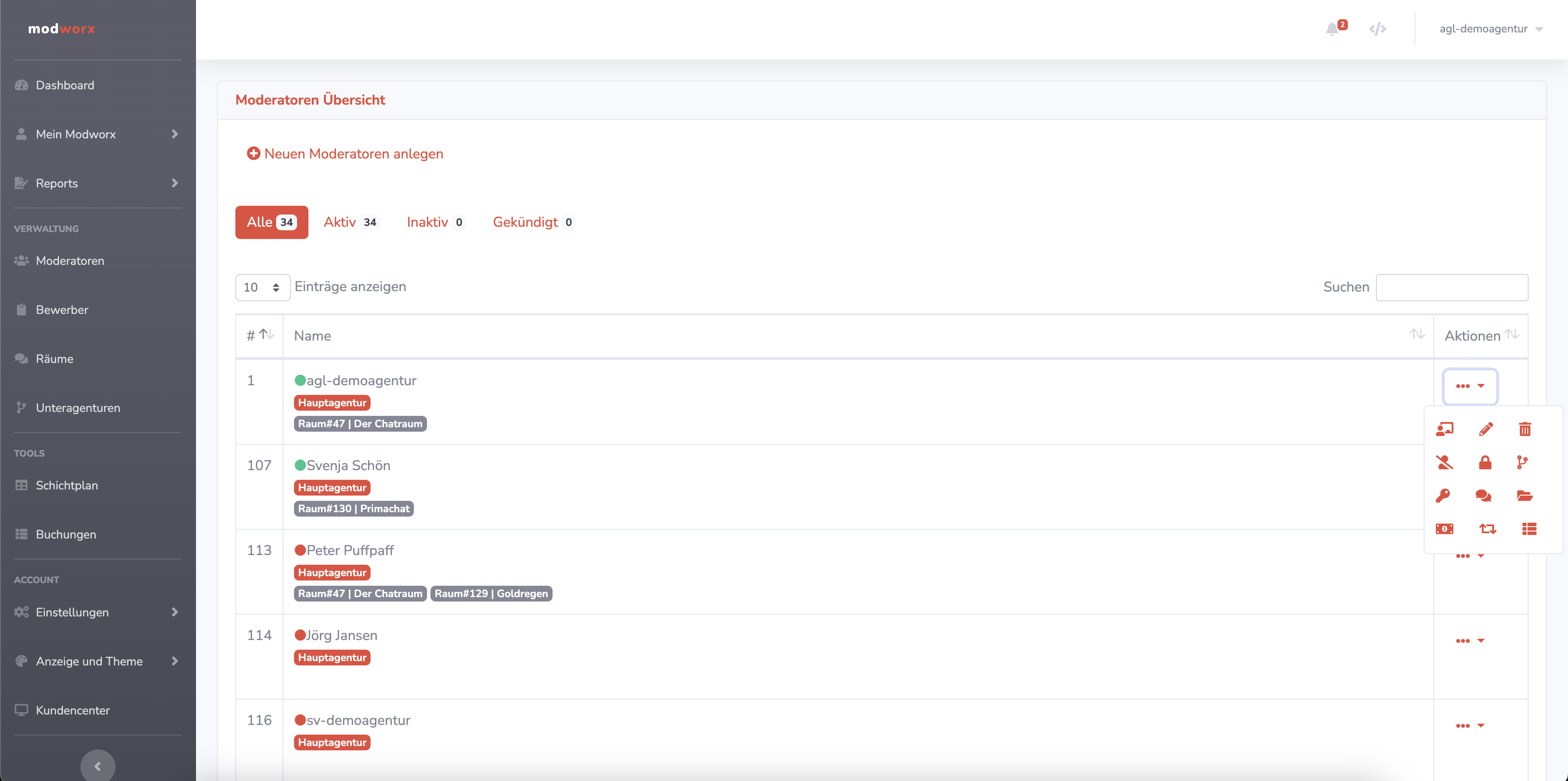 Du suchst Informationen zu deinen Moderatoren, wie Rechnungen, INs / OUTs/ Steuernummer? Mit der Moderatoren-Verwaltung von modworx kein Problem.